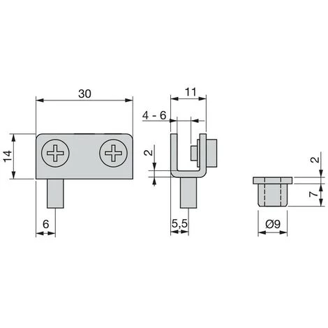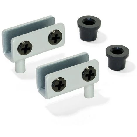Lot de 2 charnières intérieures à douille spéciales pour meubles avec portes rentrantes en verre de 4 à 6 mm d’épaisseur. Son design en U enserre le verre et le pivot de la charnière agit comme axe de rotation sur la douille. À encastrer sous pression sur la base du meuble, son installation requiert d’un perçage préalable de 9 mm de diamètre.Des vis font pression sur le verre pour qu’il ne bouge pas.Chaque lot contient une charnière gauche et une charnière droite. Fabriquées en acier finition gris métallisé .