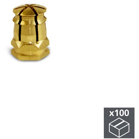 Lot d’écrous à expansion M6 à filetage métrique, fabriqués en laiton, pour visser des goujons ou des vérins sur toute sorte de meubles. À encastrer dans le panneau en bois, il requiert usinage. Il dispose d’une sphère en plastique à l’intérieur pour un réglage parfait.