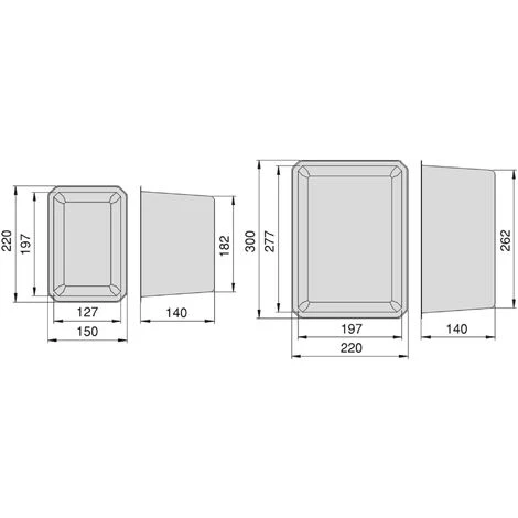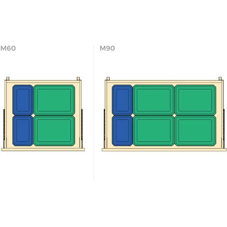 – Ils sont conçus pour les tiroirs installés dans des modules d’une largeur minimale de 600mm et ont une hauteur de 140mm.