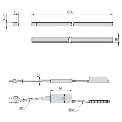 Emuca Applique LED, 350 mm, détecteur tactile, Lumière blanc froid, Aluminium et plastique