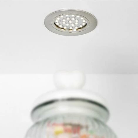Emuca Applique LED pour meuble, diamètre 65 mm, à encastrer, aucun convertisseur nécessaire, lumière blanc froid, plastique, gris métallisé