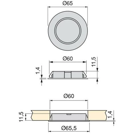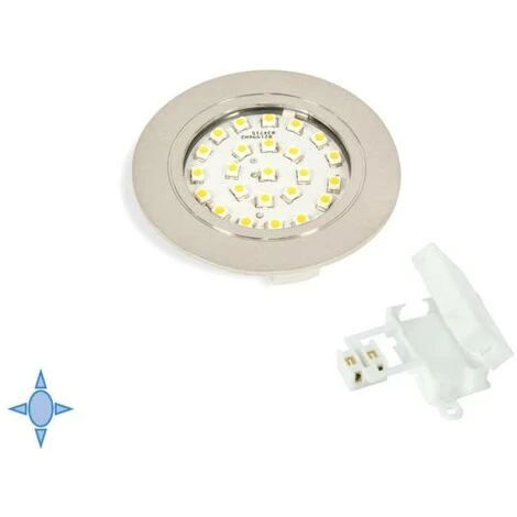 Emuca Applique LED pour meuble, diamÚtre 65 mm, à encastrer, aucun convertisseur nécessaire, lumiÚre blanc froid, plastique, nickel satiné