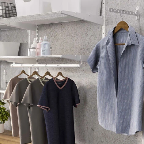 Conçus pour être utilisés avec les étagères en fil d’acier et leurs supports d’étagères (Cod. 7027612). Ces supports sont équipés de fentes pour le montage de la barre pour armoire. Ce kit comprend deux barres, deux jeux de supports (droit et gauche) et deux jeux d’embouts.