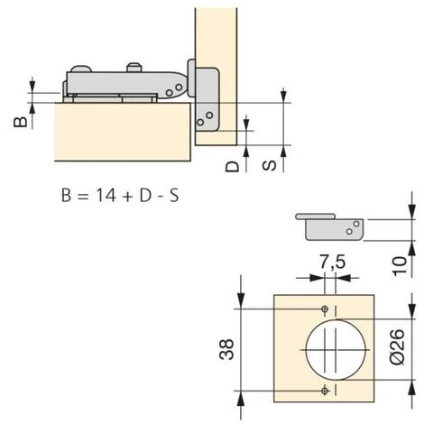 Emuca Charnière, D. 26 mm, droite pour montage en applique, ouverture 95º, avec embase, 20 ut.