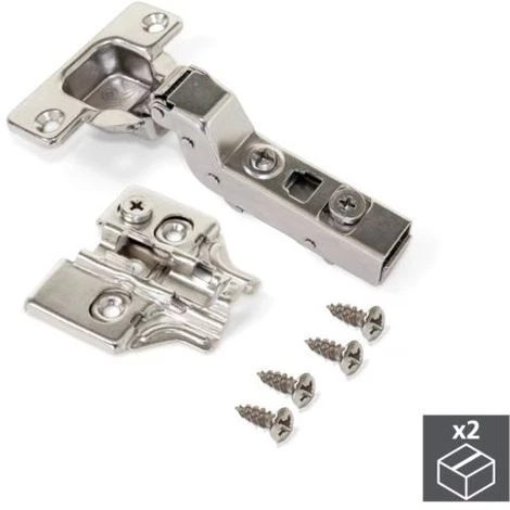 Emuca Charnière, D. 35 mm, coudée pour montage rentrant, ouverture 100º, fermeture amortie, avec embase, 2 ut.