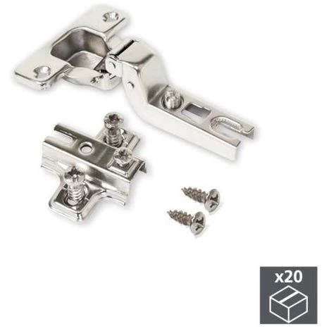 Emuca CharniĂšre, D. 35 mm, coudĂ©e pour montage rentrant, ouverture 110Âș, avec embase Eurovis, 20 ut.