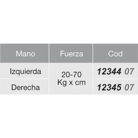 <p>Matériel: acier et zamak.<br></p><p>Finition: Nickelé</p><p>Force du compas: 20-70kg x cm.<br></p><p>Pour portes battantes de poids moyen.<br></p>Sans arrêt intermédiaire.<p> </p>