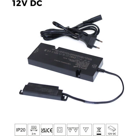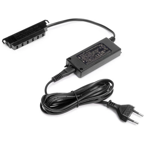 Le convertisseur à tension constante est conçu pour les luminaires LED à tension constante, et dispose d’une protection contre la surchauffe et les court-circuits. Son câble interchangeable permet de connecter un autre câble au convertisseur avec une prise différente, selon le marché auquel il est adressé. La coque, en plastique noir avec protection classe II, dispose d’un distributeur AMP avec 6 sorties et d’un câble d’alimentation de 2 mètres.