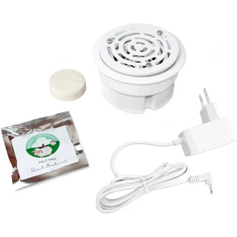 Il est fourni en kit avec une alimentation avec un câble de 1,5 m pouvant être connecté à un secteur 100 ~ 240V AC 50-60Hz. De plus, le kit comprend un feutre imbibé et une tablette désodorisante parfumée à la lavande.