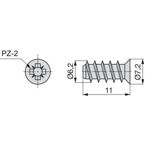 Emuca Eurovis, à tête plate Pozidrive, D. 6.2 mm, 11 mm, Acier, Zingué, 500 ut.