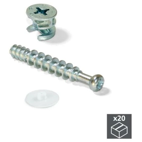 Emuca Excentrique + goujon, D. 15 mm, panneau 13 mm, Zamak et acier, Blanc, 20 ut.