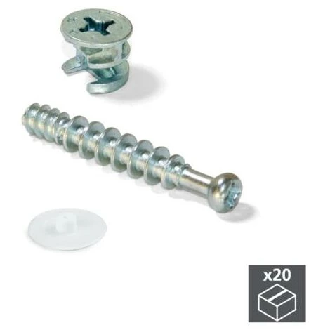 Emuca Excentrique + goujon, D. 15 mm, panneau 19 mm, Zamak et acier, Blanc, 20 ut.