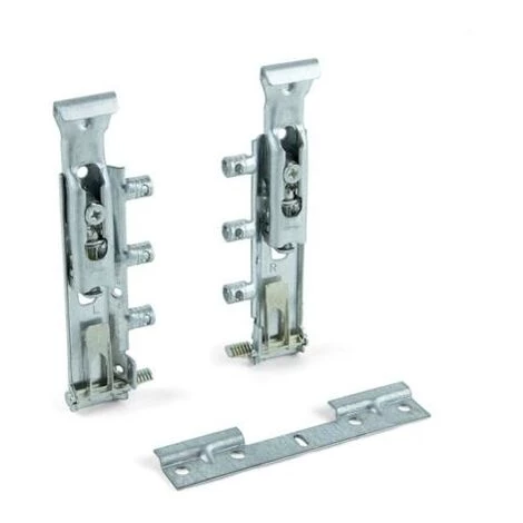 Jeu de <strong>ferrures de suspension</strong> pour les modules hauts des <strong>meubles</strong> de la cuisine, la salle de bain et la maison, capables de <strong>supporter jusquà 65 kg</strong>. Elles offrent réglage latéral, en hauteur et en profondeur du module.Les ferrures de suspension sont fixées au mur au moyen dune platine, restant invisibles une fois montées. Le seul point visible à lintérieur du meuble est le petit usinage nécessaire pour le réglage du module déjà installé.<div><br></div>