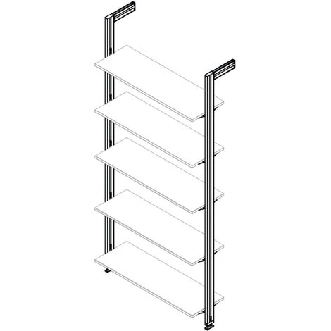 Lot de 5 jeux de supports en Zamak pour une étagère en bois. Leur montage s’effectue sur le profil en composant votre structure modulaire Zero personnalisée.