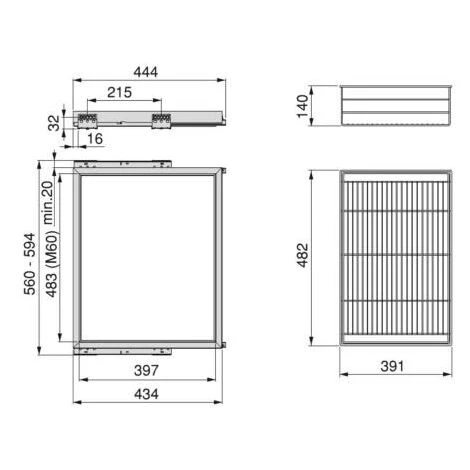 Emuca Kit de panier à fils avec glissières à fermeture douce pour armoire, réglable, module 600mm, gris pierre