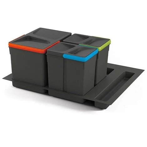 Emuca – Kit de poubelles 12 L + 2 x 6 L, module 600 mm Plastique Gris anthracite