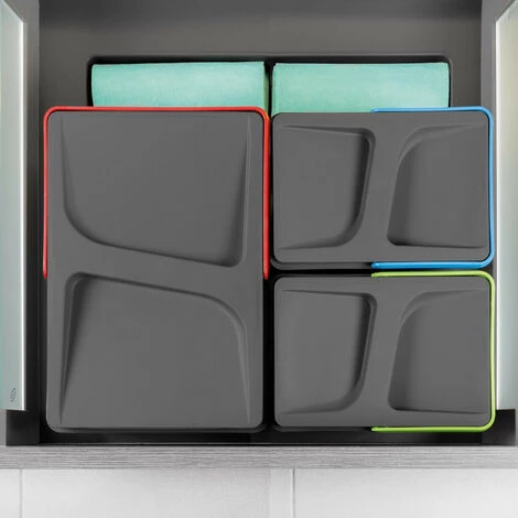 Elles sont compatibles avec toute sorte de tiroirs grâce à leurs bases à découper, qui s’adaptent parfaitement à l’espace utile. Ces poubelles sont dotées d’une anse colorée afin de mieux identifier les déchets, ainsi que pour faciliter leur extraction, et donc leur vidage et nettoyage.