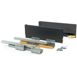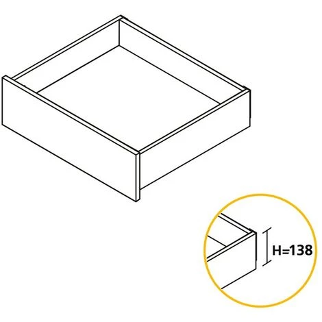 - Kit de ferrures nécessaires pour le montage d’un tiroir extérieur de hauteur 138 mm et profondeur 500 mm, n’incluant pas le fond, la façade ni la façade arrière.