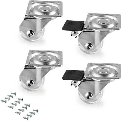 Chaque kit contient 2 roulettes avec frein, 2 roulettes sans frein et les vis de montage. Les roulettes transparentes Slip sont faciles à installer.