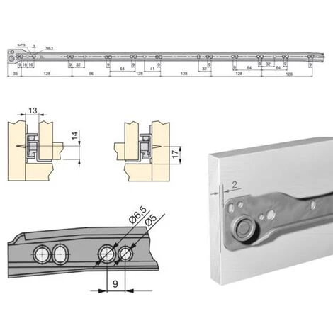 Emuca Paire de coulisses à roulettes pour tiroirs, fermeture avec chute, 800 mm, sortie partielle, Gris métallisé