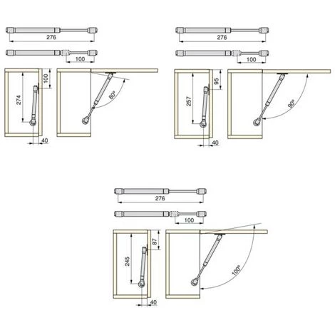 Emuca Piston pour portes relevables, force 11 kg, parcours 100 mm, Gris métallisé, 20 ut.