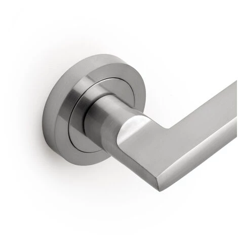 Poignée de porte à pousser avec rosace de diamètre 50mm. Fabriqué en aluminium avec finition nickel satiné avec un design actuel et élégant, et es idéal pour n’importe quel type d’ambiance.