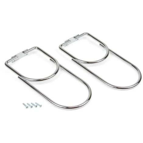 Porte-bouteilles avec 2 trous. Idéal pour installer à l’intérieur des meubles, sous les étagères ou les comptoirs de votre maison, cuisine, bar ou restaurant. Il s’agit d’un porte-bouteilles pratique pour organiser les bouteilles et profiter de l’espace sur vos étagères ou vos meubles. Il a une capacité de 2 bouteilles d’un diamètre maximum de 90 mm et son design en fil d’acier chromé s’adapte à tout style de cuisine. Il se caractérise par sa facilité d’installation sous le fond de l’étagère grâce aux vis qui sont incluses avec le porte-bouteilles.
