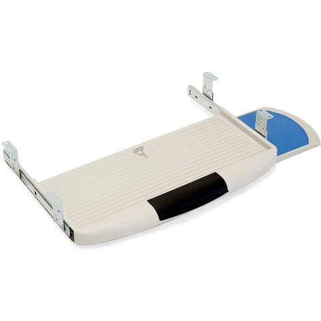 Plateforme porte-clavier avec coulisses à billes pour l’extraire et plateau auxiliaire pour la souris. Spécialement conçue pour les meubles de bureau et les tables de travail.