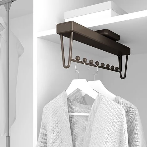 Le porte-vêtements extractible pour armoire Moka permet d’optimiser l’espace à l’intérieur des armoires et des dressings, tout en facilitant l’accès aux cintres. Il est fabriqué en aluminium finition couleur moka, et équipé avec des coulisses à fermeture amortie.
