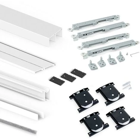 Emuca Système coulissant Placard 74 pour armoires, 2 portes avec profils Wave, épaisseur 16mm, fermeture amortie, panneaux non incluses, Peint en blanc, 1 ut.