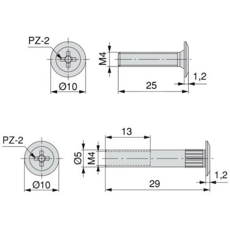 Emuca Vis, à tête extra-plate, 25 mm + écrous M4, 50 ut.