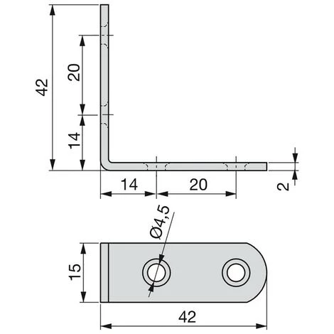 Équerres d’assemblage avec 4 orifices pour visser sur la surface du meuble. Parfaites pour la fixation de panneaux en bois en angle droit de 90°. Fabriquées en plaque en acier finition zingué haute qualité. Dimensions: 42 x 42 mm