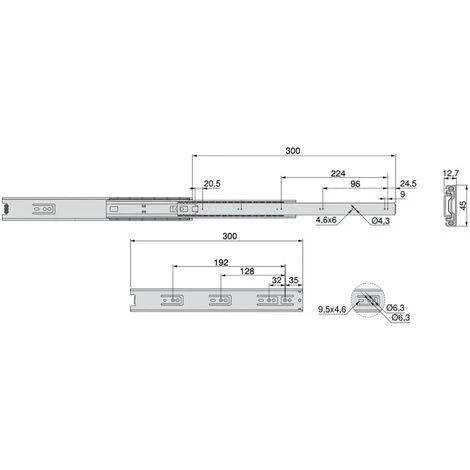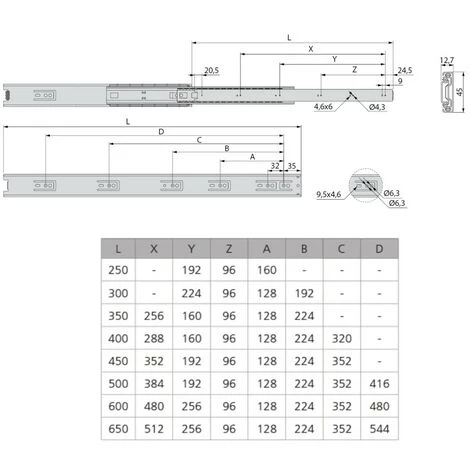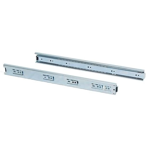 Coulisses à billes à sortie totale fabriquées en acier zingué. Ce type de coulisses s’installe sur une rainure de 45 mm de largeur sur le côté du tiroir. Les vis de montage ne sont pas incluses. Avec gâchette pour le démontage. Charge maximum 35kg.