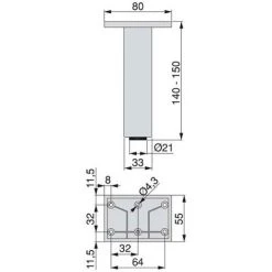 Emuca Pied Pour Meubles, Central, Réglable 140 – 150 Mm, Plastique, Chromé, 2 U. – Talla