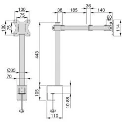 Emuca Support écran Inclinable Et Rotatif à 360° Pour Table., Simple, Peint En Noir, Acier, 1 Ut. – Talla